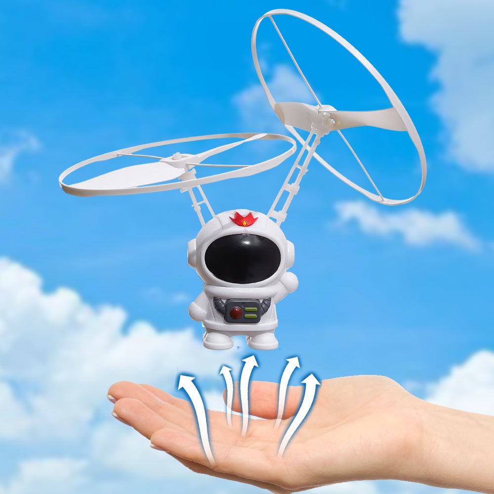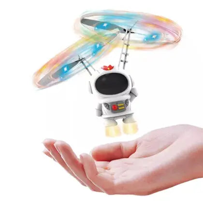 Un juguete de inducción que vuela con hélices iluminadas, ideal para pequeños exploradores.