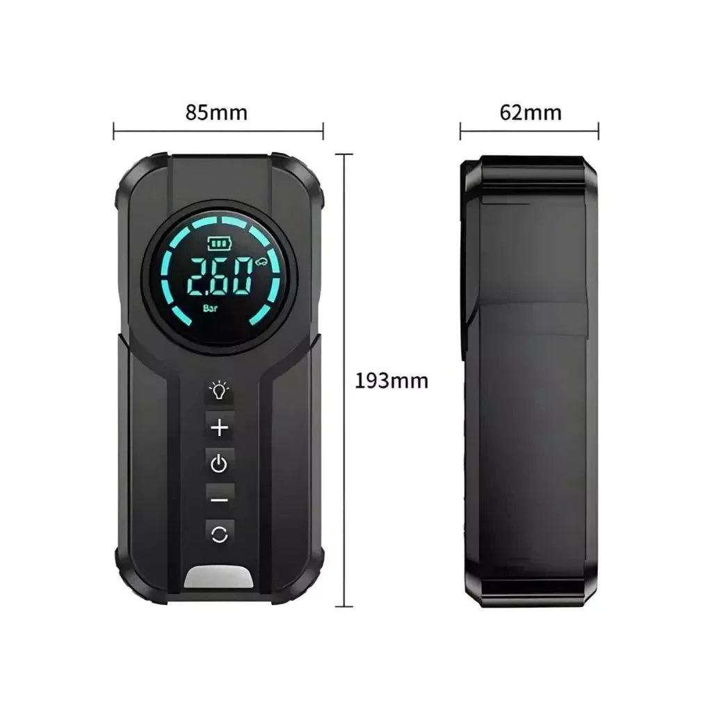 Compresor de Aire de Alta Potencia (150 PSI): El MaxCharge Air no es solo un compresor común. Gracias a su potente motor, puedes inflar neumáticos de coche, moto, bicicleta e incluso inflables rápidamente, con máxima precisión y sin complicaciones.